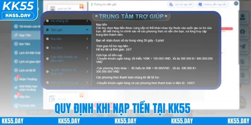 Hướng dẫn nạp tiền tại KK55